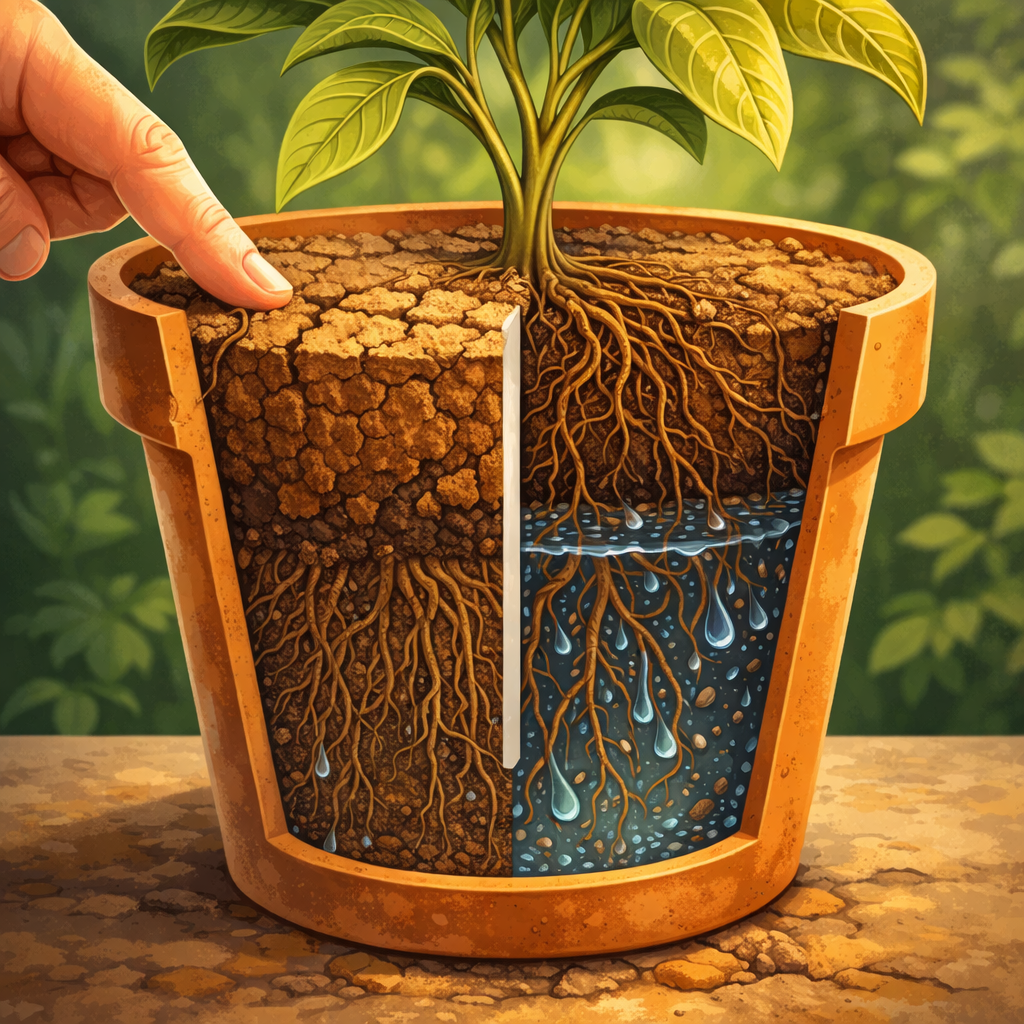 Solo seco em cima e encharcado embaixo: erro comum em vasos